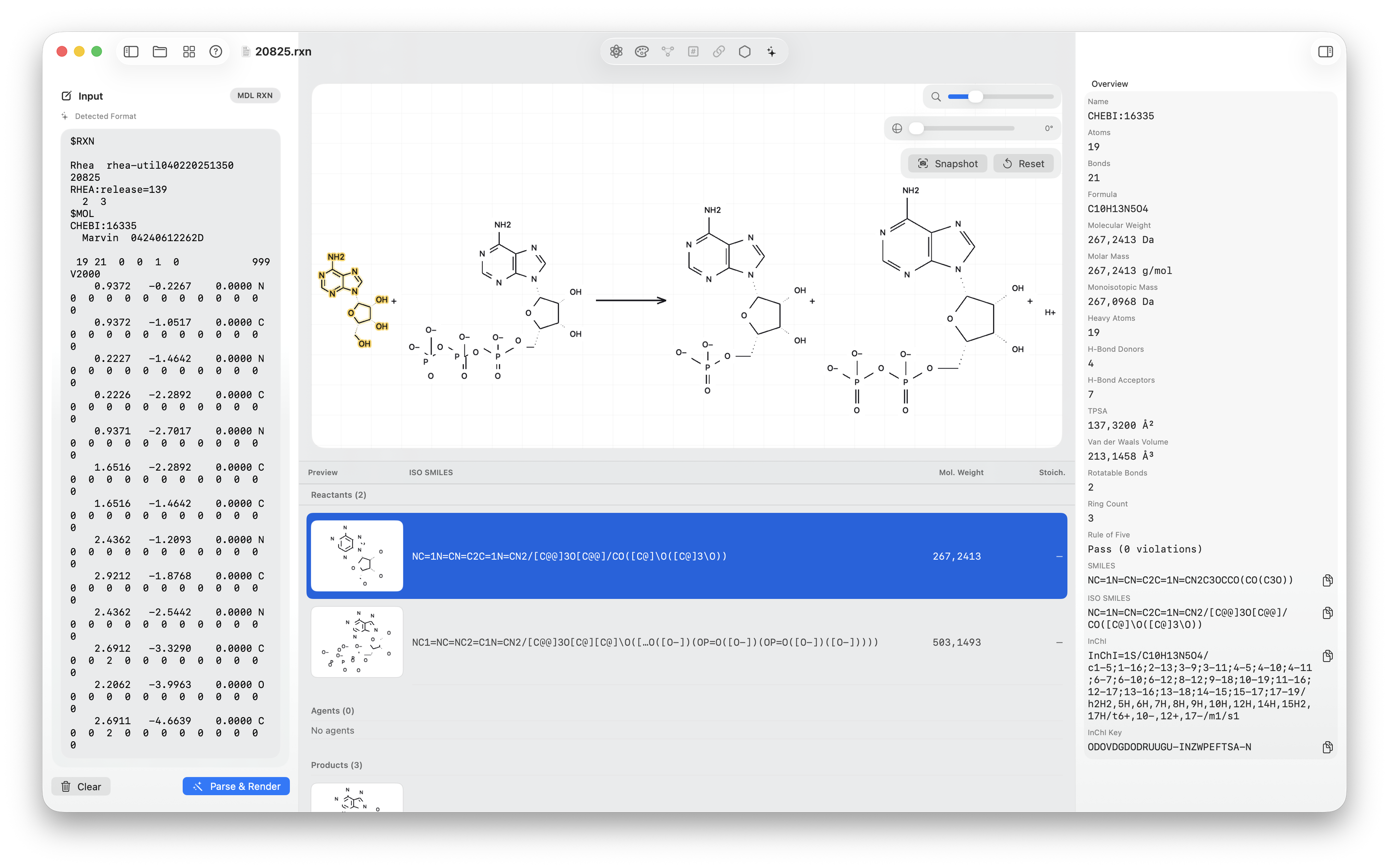 .rxn and related reaction files, review reactants, agents, and products, and inspect participant details.The spark: why this app exists